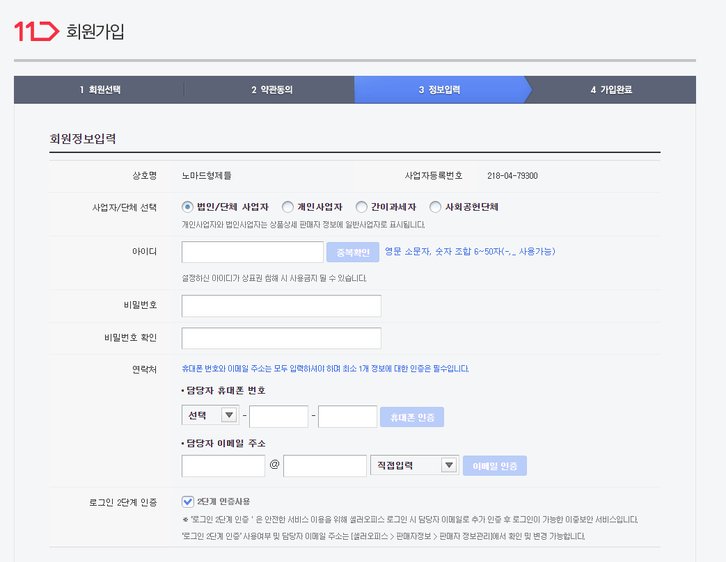 사업자 판매회원을 클릭해 줍니다